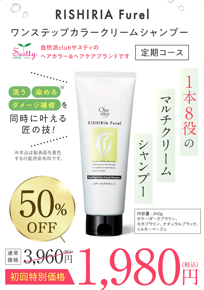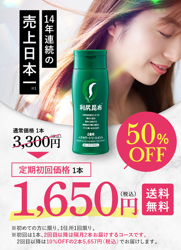 頭皮や髪への負担を少なく白髪ケアができる利尻ヘアカラートリートメントが公式サイトでは定期初回50%OFFで購入できます!