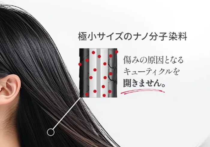 • 4つのイオン色素とナノ分子カラー※4で髪表面を着色するので負担が少ない