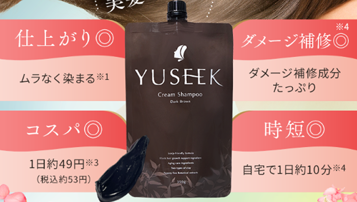 YUSEEKはクリームシャンプータイプで使うだけ、ダメージ補修までしてくれます。